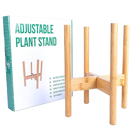 Bamboo House Mid Century Style Adjustable Width Plant Stand Between 9 13 Made From Bamboo Modern Home Decor Elegant Flower Pot Holder Fits Medium