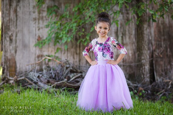 Little Girls Floral Easter Tutu Dress Outfit Toddler Purple Lavender Spring Tulle Vintage Lace Tea Length Dresses Layna